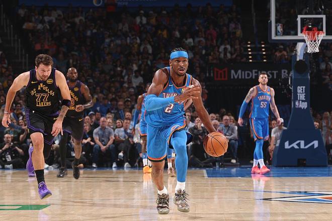 亚历山大MVP雷霆43分血洗湖人,东契奇腿筋伤退鸡飞蛋打