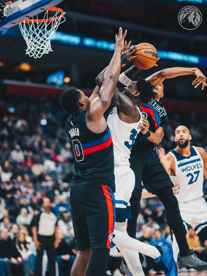 詹金斯26+5+8活塞横扫森林狼2连胜,杜伦22+14兰德尔27+6+6