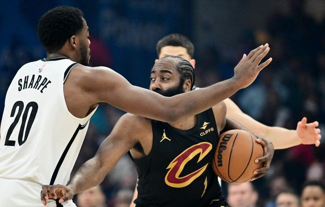 胜篮网豪取6连胜!哈登将骑士双塔喂吐,这阵容再加詹姆斯还咋玩