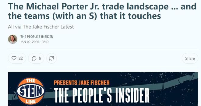 根据名记Jake Fischer报道,勇士、雄鹿和活塞等多支球队有意交易拿下小波特。