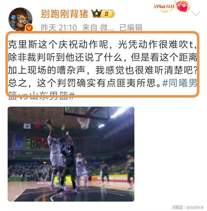 赛后,媒体人“别跑刚背猪”在社媒上评论道。“克里斯这个庆祝动作呢,光凭动作很难吹t,除非裁判听到他还说了什么,但是看这个距离加上现场的嘈杂声,我感觉也很难听清楚吧?总之,这个判罚确实有点匪夷所思。”。