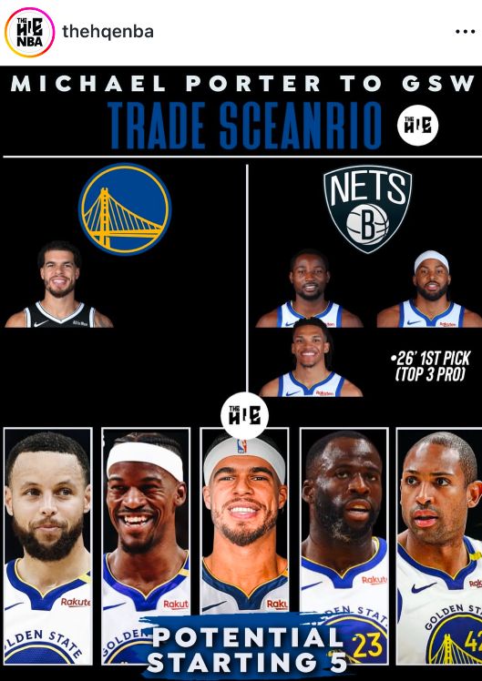 交易方案,勇士送出库明加、穆迪、理查德、2026年前三保护首轮得到小迈克尔-波特。