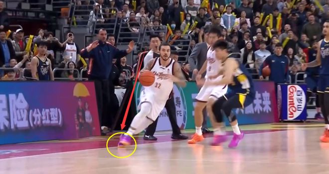 赛后有博主晒出了约克没有踩线的清晰视频,从慢镜头回放来看,约克在边线附近时脚底板并没有踩中边线,约克的脚底当时是处于悬空状态,虽然脚跟划过了边线,但脚弓并没有碰触到边线,按照规则,这不算踩线(如果约克当时鞋底再往下压那么几毫米的话,那肯定是踩线)。