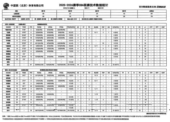 北京时间2026年1月6日19:35,2025-2026赛季CBA联赛第11轮继续进行,山西汾酒继续坐镇主场,迎战四川丰谷酒业。两队历史上共交手31次,山西汾酒18胜13负,上赛季常规赛两队交手4次,山西汾酒3胜1负。本场比赛,山西队整体发挥出色,拼抢篮板球积极,阶段性防守做的不错,尤其是对重点人的限制;但在进攻端依然存在处理球过于简单的问题,连续几场罚球命中率偏低,需努力提升改进,最终全场比赛结束,山西汾酒97:79战胜四川丰谷酒业。