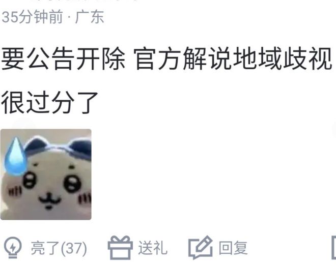并且抖音CBA账号下放的比赛录像回放,也及时下架了该名主播的比赛录像回放,不得不说,抖音这次的危机处理相当及时,当然,只是停职还不足以平息民愤,有球迷表示:必须要公告开除,官方解说地域歧视很过分。