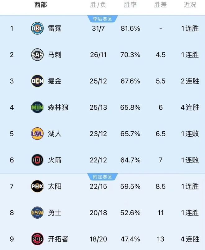 森林狼凭借这波连胜超越湖人上到了第四