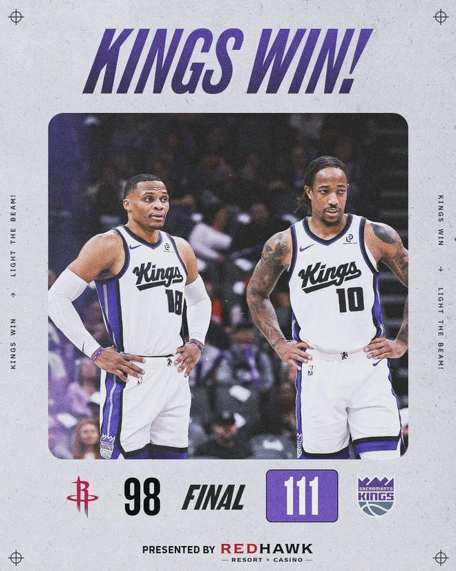 北京时间1月12日,NBA常规赛:西部垫底的国王主场111-98击败火箭。本赛季国王跟火箭交手3次,国王2胜1负。威少常规赛生涯一共跟杜兰特交手19次,威少12胜7负。赛后威少和杜兰特、亚当斯拥抱,大哥二哥分开已10年。