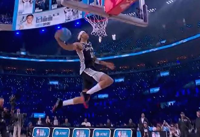 第一位登场的为马刺新秀卡特-布莱恩特,他奉献一记360度大风车扣篮,得到45.6分。
