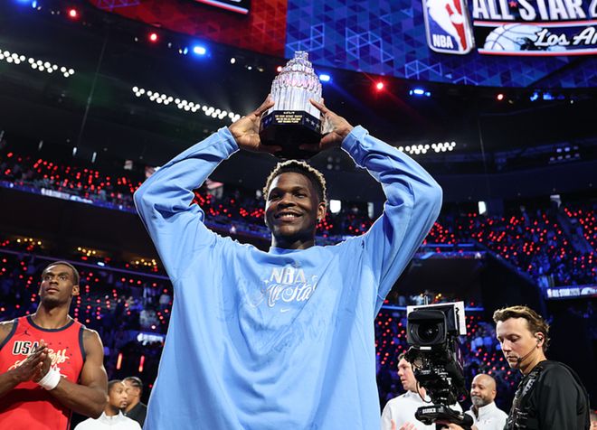 新星队最终拿到了冠军,新星队的爱德华兹在3场比赛中都有不俗表现,总计22中13(三分15中6)得到32分9板3助1断,他荣膺了全明星赛MVP。