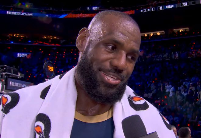 詹姆斯在自己第22次全明星之旅,合计得到15分7篮板5助攻,而杜兰特合计得到12分3篮板2助攻3抢断1盖帽数据。