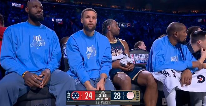 随后条纹队48-45险胜世界队的比赛,詹姆斯首发7分57秒仅有3中1,仅得到2分2篮板4助攻3犯规表现,在场正负值-6。至于杜兰特打满12分钟7中3,其中三分4中1,得到7分1篮板1助攻。