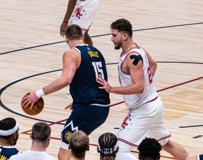 从4组数据说起,本赛季约基奇场均28.5分12.4篮板10.6助攻,两项命中率58%+40%,高阶效率值依旧夸张,但自从1月底打快船复出后,他仿佛换了个人。1月底和快船复出一战,25分钟11中8,罚球17中13,掘金最后赢得并不光彩,而约基奇只用11次出手换来17次罚球,东契奇和亚历山大都比不了!此后面对雷霆,那是遇到对手了,约基奇发挥欠佳,只有16分7篮板8助攻入账,还有6次失误。包括输给活塞的24分,输给尼克斯的30分(三分球13中1),赢公牛相对还好,之后打骑士,又是只有11次出手,换来12次罚球。