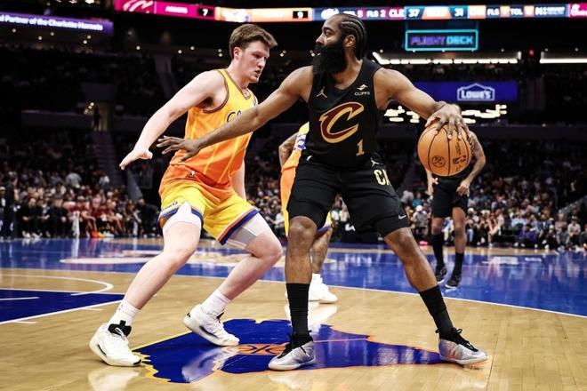 骑士:哈登18分8助攻,米切尔32分,阿伦26分14篮板,梅里尔10分。