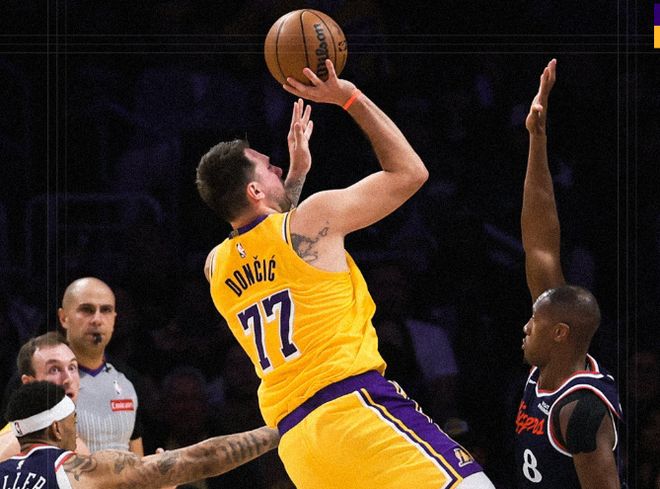 后半段东契奇下三分雨+喂饼海斯,肯纳德和东契奇三分球弹无虚发,快船就依靠马瑟琳勉强支撑,第一节湖人41-31领先。进入第二节,里夫斯和八村塁继续上分,湖人全员手感火热,尼德豪泽还给了老詹一肘子,吃到一级恶犯。湖人最多拉开16分分差,危急时刻,伦纳德站出来了,抢断反击抛投,接球空位三分,随后干拔造三分犯规,老詹和艾顿止血,伦纳德喂饼米勒,科林斯和东契奇对轰三分球。后半段伦纳德继续强攻篮下,东契奇就是被一步过,节末伦纳德再中三分,海斯吃饼稳住节奏,马瑟琳继续造犯规,半场湖人72-65领先。