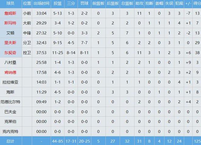 湖人数据如下: