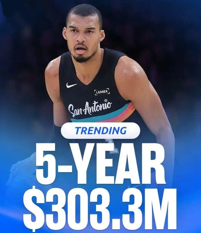 文班亚马本赛季是新秀赛季的第三年,他今夏有资格跟马刺签下一份五年2.52亿的提前续约顶薪,只要文班亚马入选最佳阵容、拿MVP、拿DPOY那么他就会触发指定新秀顶薪条款,他的五年顶薪会上浮到五年3.033亿,从他本赛季的表现来看入选最佳阵容没有任何问题。