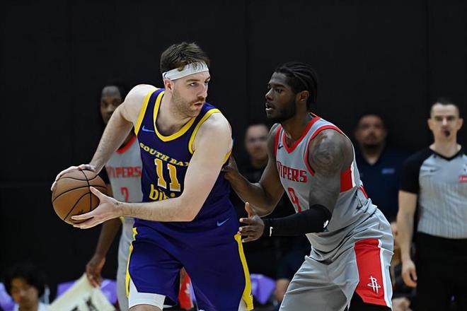 本场比赛中,被湖人下放到NBA发展联盟赛场进行锻炼的双向合同内线球员德鲁-蒂米(Drew Timme)的表现依然是非常出色的。蒂米全场出场36分钟,投篮13中9,三分线外1中0,罚球8中5,得到了26分8篮板5助攻的数据,还有4次失误和3次犯规,正负值也是达到了+14。蒂米在进攻端展现出了自己不俗的篮下得分能力和终结能力,在对手内线制造了巨大的威胁,拿下了不少分数,而且他也展现出了一定的传球能力和策应能力,在进攻端的功能可以说是非常全面。蒂米不仅在进攻端表现不错,他在防守端的表现同样是值得肯定的,他也是有着不俗的篮板保护能力的。毫无疑问,南湾湖人能够战胜对手,也和蒂米在进攻端的不俗表现,有着密切的关系。