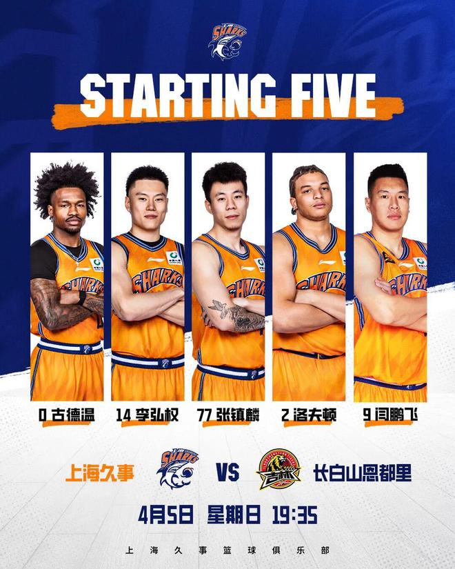 本场比赛,上海男篮派出了由古德温、李弘权、张镇麟、洛夫顿、闫鹏飞组成的首发阵容。