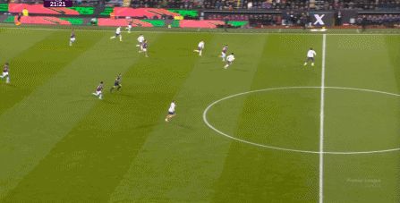 除此之外,另一个让我们恍如隔世的画面,便是对手可以轻而易举地完成了在曼联中场线高度上的横移操作,这也是索肖和滕哈赫时期的常见画面了: