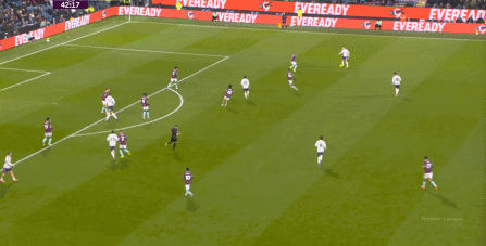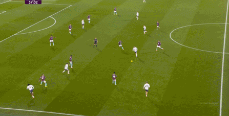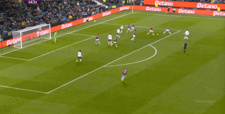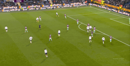 而且,攻转守的逻辑也重新发生了变化,比如这次谢什科没有接好球,立刻被伯恩利发展到边路,于是你可以看到,中场、右中卫和右后卫需要形成三人之间的轮转: