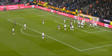 这粒进球的产生,明显提振了曼联的士气,于是在之后的几分钟里,曼联迅速提高强度,将压力直接施加到伯恩利的后卫球员的身上,从而连续制造了打身后中柱、制造角球的进攻势头: