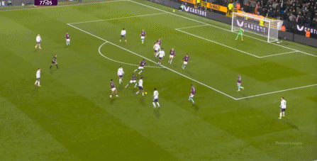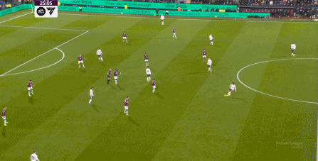 但曼联被打穿肋部是显而易见的事实,而且在局部,你可以看到曼联实际上陷入了二防三的情况,卡塞米罗无法同时防对手传球和跑位: