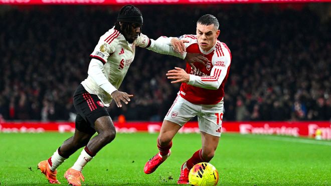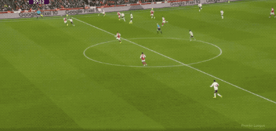 第43分钟,廷贝尔的传中被头球解围,赖斯跟进一记凌空弹射,阿利松稳稳将球没收。