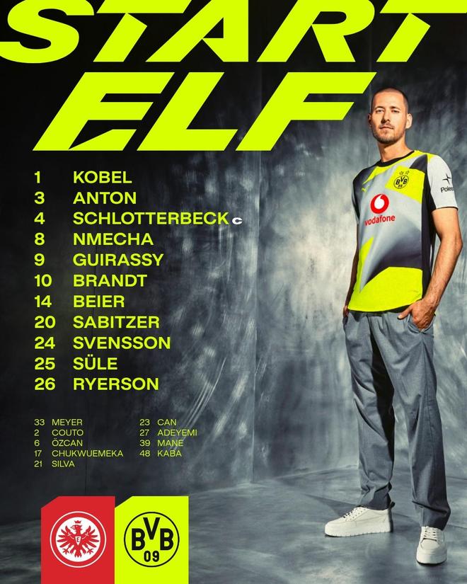 多特客战法兰克福:吉拉西、布兰特首发,萨比策、恩梅加出战