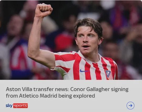 报道称,维拉不会以3500万英镑的价格买断埃利奥特,而加拉格尔是他们的长期目标,不过马竞不希望以租借的形式放走这名中场,除非交易中包含强制性买断条款,并且费用要接近他们当初3800万英镑的买入价。