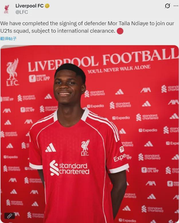 官方:利物浦宣布签下了摩尔-塔拉-恩迪亚耶,这名18岁的中卫将直接加入红军u21。