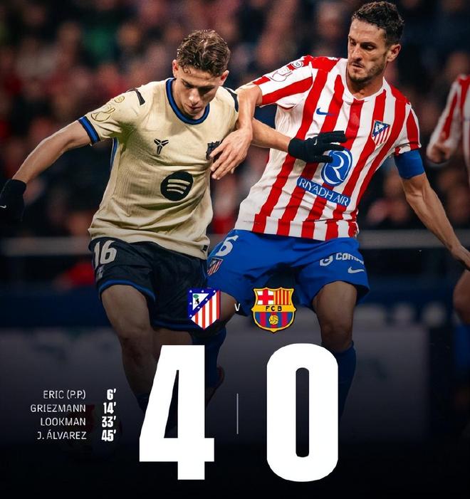 这场4-0的惨败,绝非偶然,而是马竞战术制胜与巴萨多重隐患爆发的必然结果。马竞这边,主帅他排出针对性极强的阵型,主打高压反击,前场四人组疯狂逼抢巴萨后场出球点,成功掐断了巴萨的传控节奏;防守时,球队迅速切换为紧凑的防守体系,三条线衔接紧密,让巴萨的传控难以转化为实质威胁。