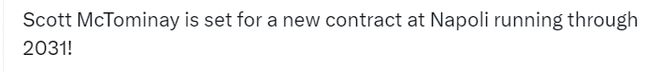 贾马里奥利表示,如果今年夏天有高额报价,麦克托米内可能会离开球队。他还将这种情况对比德甲的斯图加特出售尼克·沃尔特马德的情形,后者加盟了英超的纽卡斯尔联。