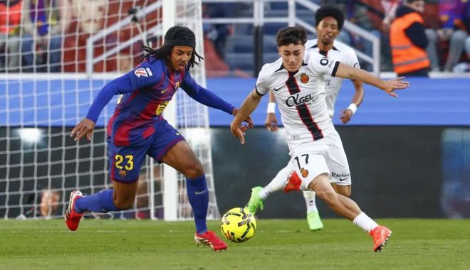但是更多的时候,在需要团队压迫时,费尔明经常会放任自流,并不投入到防守序列,反倒是成为高位逼抢体系中的一个漏洞。尤其是在佩德里伤缺时,费尔明会获得更多出场的机会,于是进一步削弱巴萨的高位逼抢。