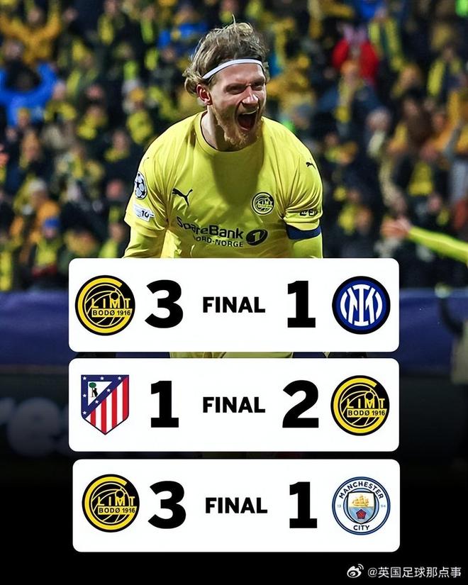 值得一提的是,这也只是博德闪耀在2026年的第三场正式比赛。准确地说,是他们进入新年后全部的三场比赛。对手分别是曼城、马竞、国米。结果是全胜。3-1国米、2-1马竞、3-1曼城,莫说小球会,哪怕是皇马来,也很难保证拿出这样成绩的。