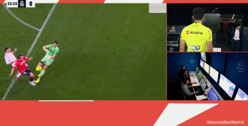 第26分钟,居莱尔角球防守抢位被对方推倒,主裁判上前警告