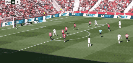 第42分钟,马略卡一次简单的进攻就撕开防线,莫拉内斯停球、转身、爆射一气呵成,皇马0-1落后,仅此一次机会,主队就以1球领先进入中场休息。
