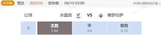 竞足 周四006 欧协联 水晶宫VS佛罗伦萨