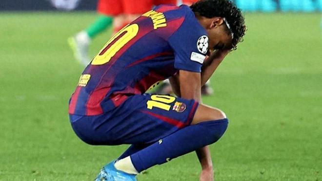 欧冠四分之一决赛首回合,巴塞罗那主场0-2不敌马德里竞技。终场哨响,18岁的拉明·亚马尔瘫倒在诺坎普的草皮上,久久不愿起身。这一幕,成为了当晚最令人唏嘘的画面。