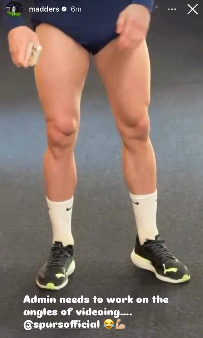 北京时间4月8日,热刺在社媒上晒出麦迪逊的康复视频,有球迷发现视频里麦迪逊左右腿不一样粗,怀疑麦迪逊肌肉萎缩。麦迪逊随后在社媒上晒自拍并回应:我们的员工该练练拍摄角度了。