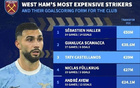 西汉姆联锋线引援花费前十:阿莱5000万第一,冬窗两新援在列