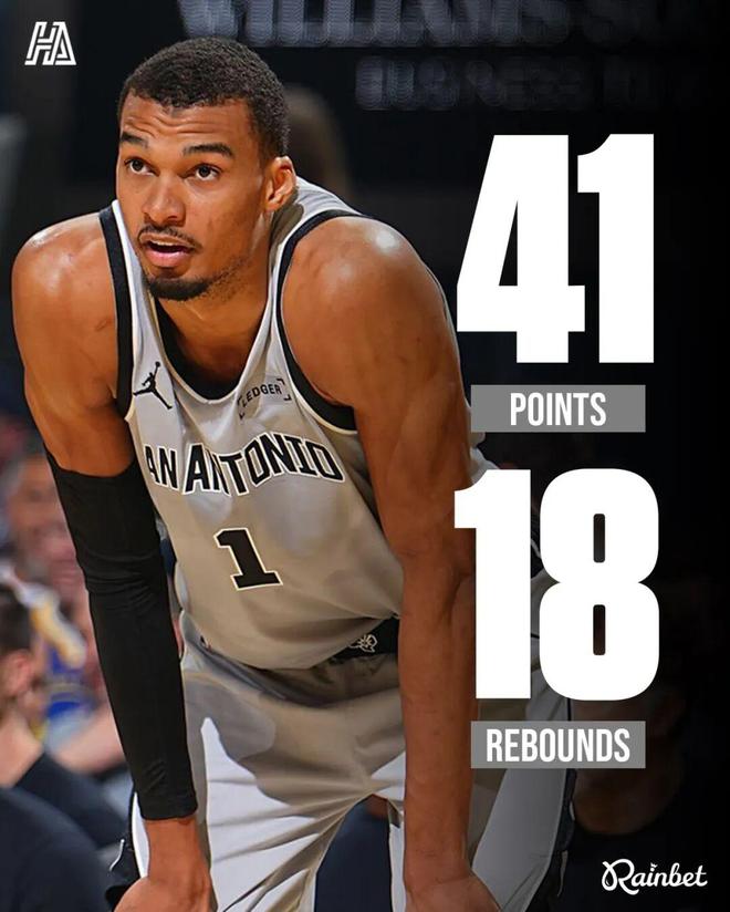 文班41+18+3封盖,打爆最佳防守球员造2大神迹,马刺灭勇士10连胜