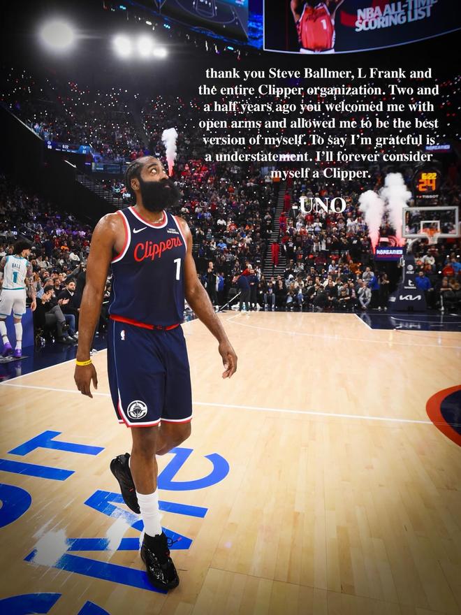 哈登在社媒中写道:“感谢鲍尔默、弗兰克以及整个快船上下的所有组织人员。两年半之前,你们张开双臂欢迎我,让我得以成为最好的自己。对此,我说感激涕零都不足以表达我的心意,我将永远视自己为快船的一份子。”