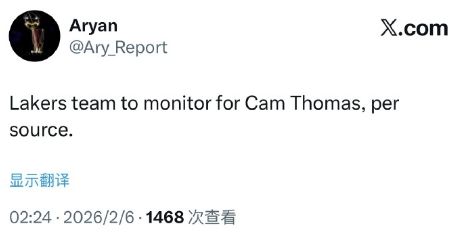 NBA记者Aryan:湖人密切关注卡梅伦-托马斯!