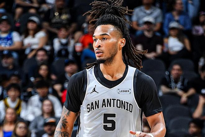 这场比赛,弗拉格大战文班亚马的好戏未能再度上演,弗拉格12中5仅得到14分4板4助,正负值-31全队最低;文班亚马14中6仅贡献16分11板1助3帽。不过,马刺榜眼卡斯尔却成为这场德州内战的主宰者,迎来生涯之夜。面对独行侠队后卫群,卡斯尔佛挡杀佛神挡杀神,得分组织篮板一把抓,彻底杀疯了。全场比赛下来,卡斯尔出战31分钟,19投15中(三分球5中3),罚球10中7,爆砍40分+12篮板+12助攻+3抢断+1盖帽,场上正负值高达+30。与此同时,卡斯尔一战刷爆多项NBA纪录。