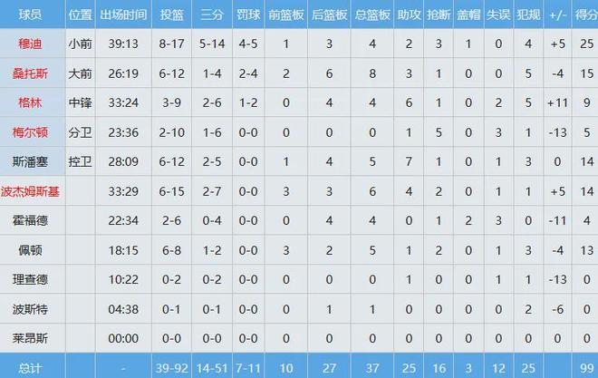 勇士数据如下: