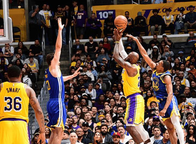 下半场比赛开始,易边再战,詹姆斯正面超远三分球洞穿篮心,揭开第三节比赛序幕,桑托斯篮下旱地拔葱放篮还击一球,詹姆斯不甘示弱,标志性的坦克碾压上篮挑落两分,追梦格林的底角三分也空心入网。第三节比赛,老詹火力全开,单节6投4中得到12分3助攻,而湖人也在老詹的带领下打开局面,下半场进攻效率火速回暖,八村塁,斯马特等人也保持着不错手感,虽然勇士这边,状态也比上半场好了很多,不过明显还是湖人队更胜一筹,三节比赛打完,湖人79-71反超勇士8分。末节决战,波杰姆斯基连投带传试图率队追分,格林和桑托斯的三分球又帮助勇士追至1分分差。