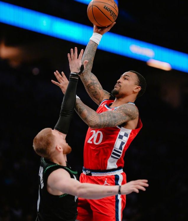 本场比赛,快船当家球星伦纳德状态出色,表现无懈可击,攻守两端侵略性十足,一人挑起球队的大梁!全场比赛,伦纳德30投14中,3分11中5,罚球10中8,得到41分8篮板2助攻4抢断!值得一提的是,他连续31场砍下20+,刷新个人纪录!同时,也超越格里位列队史第6,是快船队史近41年最长的纪录!不得不承认,健康的伦纳德真的是怪兽级别的球星,一个人改变一支队的攻防能力。