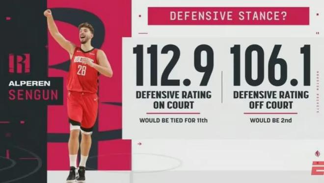 前两天有数据显示这哥们本赛季在场时火箭防守效率下降7.9,上赛季则是上升2.7......同时当他在场时球队防守效率112.9,反之106.1。