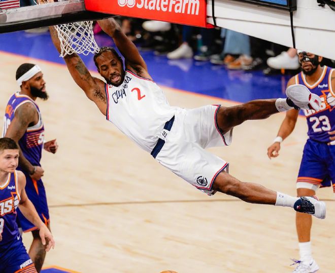 一切因素显示,看来快船又要掉下去了,但最近两场比赛,伦纳德带队分别击败了国王和森林狼,打国王一战没什么好说的,伦纳德31分,国王第四节主动放弃,用替补打完全场;但和森林狼一战,小卡轰下41分8篮板4抢断,最终快船19分大胜完整体森林狼,距离西部第八的勇士只差2.5个胜场。有一幕让人印象深刻,比赛打到第四节还剩9分钟,森林狼全队得分是67分,小卡个人得分是40分,镜头给到爱德华兹,他注视着小卡的方向,陷入沉思。换来的几个新援,加兰+马瑟琳都打不了,这算是小卡单核了吧!