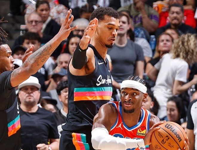 还有,打马刺+火箭+湖人三场比赛,都出现过一种现象:当雷霆处于落后局面时,只要冲击篮下,基本都能造成杀伤,1米93的伊塞亚乔都能让伊森无可奈何。简单来说,在雷霆,谁拿到球,谁基本锁定罚球红利大礼包。这可不仅仅是亚历山大的问题了,是雷霆全队,中大奖了!对手起势时,千万别往内线冲,裁判不会轻易给罚球。这也是马刺为什么能四杀雷霆的原因,因为面对雷霆时,马刺全员三分在线,逼迫雷霆扩大防守,撕扯开内线空间。雷霆本赛季场均24次罚球并不算多,但通过场上节奏,他们占尽优势。